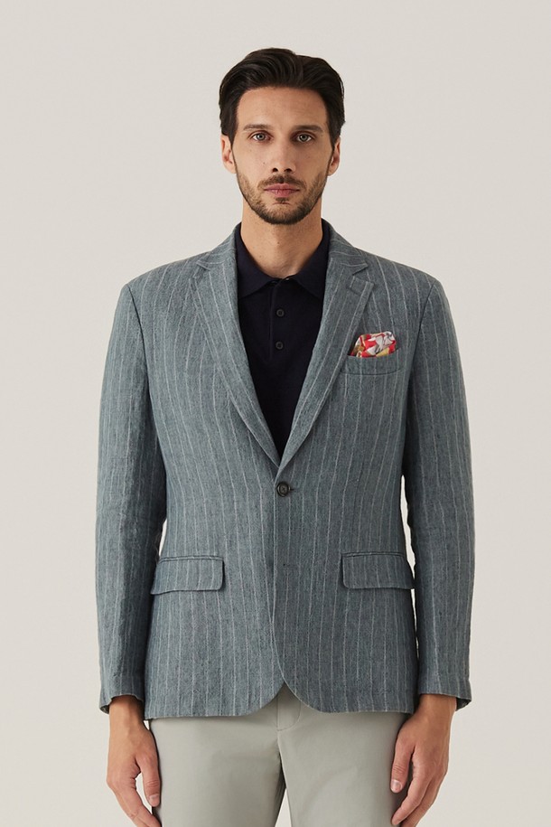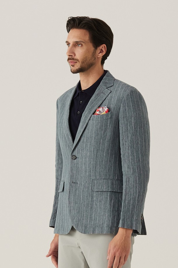 수입 린넨 스트라이프 자켓 G/블루 (AM0FOZC20146)