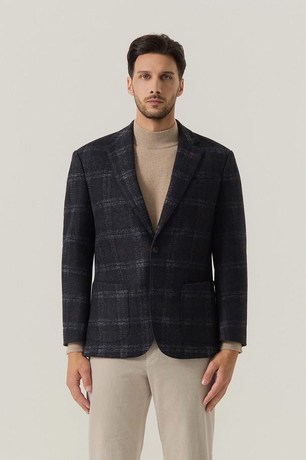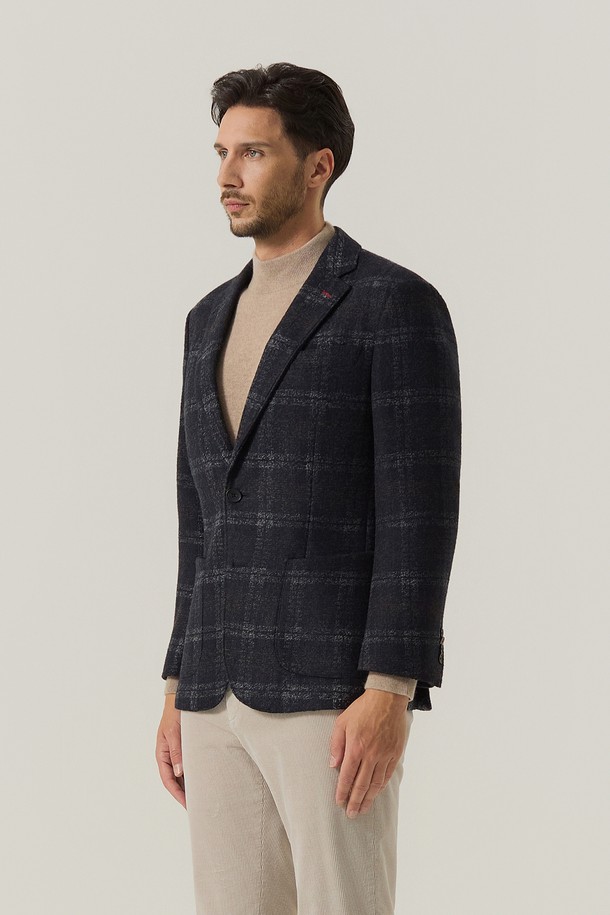 울 블렌드 체크 저지 자켓 D/네이비 (AM0FOZC40648)