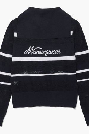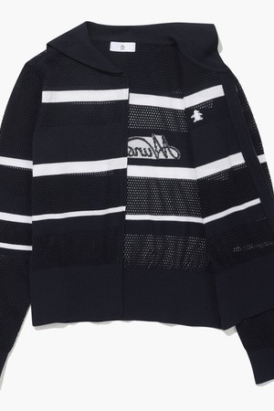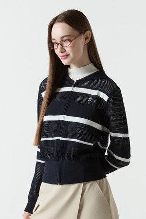 여성 스트라이프 오버핏 니트 후드 집업 다크네이비(MQ222LSJ41)