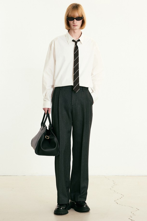 Virgin Wool Herringbone Wide Pants (Grey) TNPA5F102G2