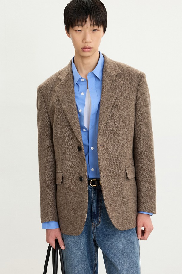 Redford Wool Blended Herringbone Jacket (Beige) TNJA5F105I2