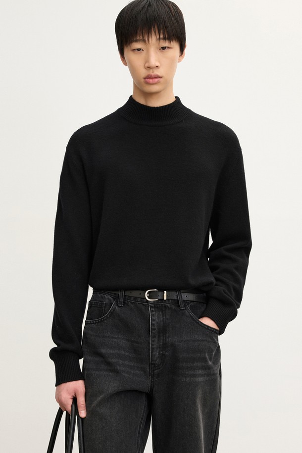 Cashmere Mock Neck Knit Top (Black) TNSW5F106BK