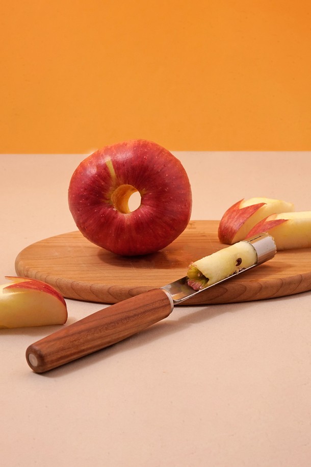 [트라이앵글] 센스 시리즈 애플코러는 가정 및 전문 요리용 사과 씨 제거 도구입니다. 실버와 브라운 두 가지 색상으로 제공되며, 독일산 FSC 인증 자두나무 핸들과 스테인리스 스틸 스틱 버튼의 세련된 조화가 돋보입니다. 견고하고 부드러운 촉감의 자두나무 핸들은 그립감이 뛰어나며, 조직이 조밀하고 탄력적입니다. 물이 잘 스며들지 않아 위생적으로 사용할 수 있으며, 친환경 기프트 박스 포장으로 소중한 사람에게 선물하기에도 좋습니다. 애플코러는 심플하고 세련된 디자인으로 주방의 품격을 높여줍니다.