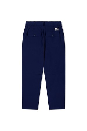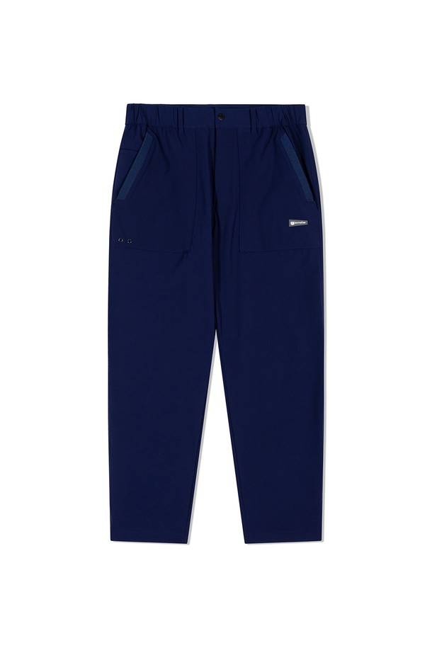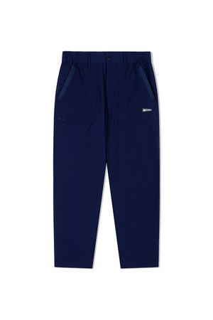 네이비 컬러의 스트레치 앵클 팬츠입니다. 봄, 여름 시즌에 적합하며, 캐주얼, 스포티한 스타일을 연출하기 좋습니다. 레귤러핏으로 편안하게 착용 가능하며, 얇은 두께감과 부드러운 촉감이 특징입니다. 허리 스트링과 후크 지퍼, 밴딩 처리로 편의성을 더했습니다. 앞면 2개 아웃포켓과 뒷면 2개 힙포켓, 아일렛 포인트 등의 디테일이 돋보이며, 동네 마실룩, 여행룩, 휴가룩에 모두 어울립니다.