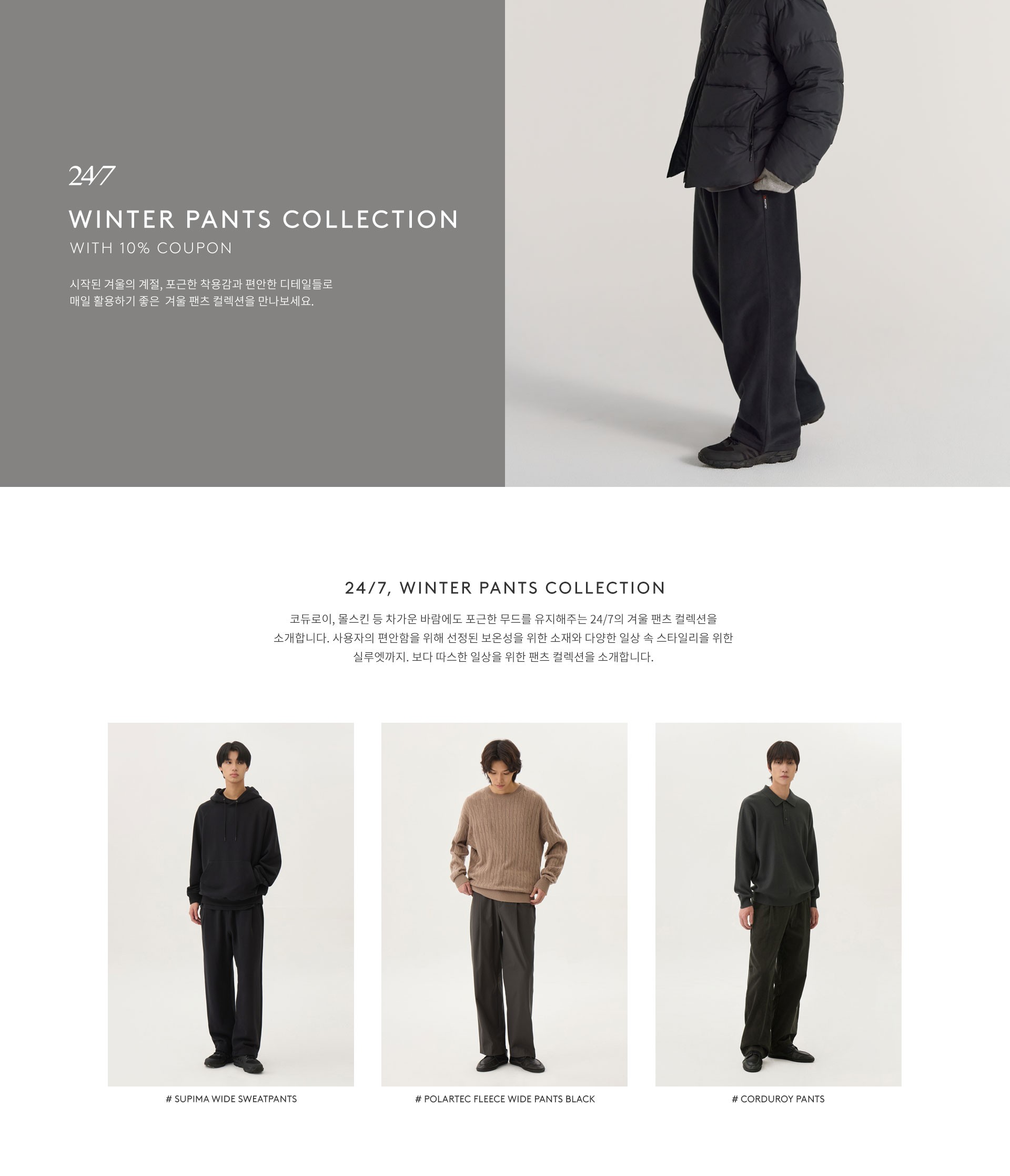 한겨울까지 활용하기 좋은 팬츠 컬렉션 + 10% COUPON