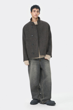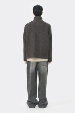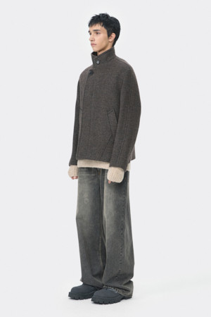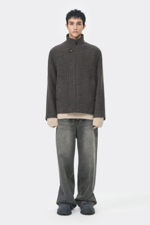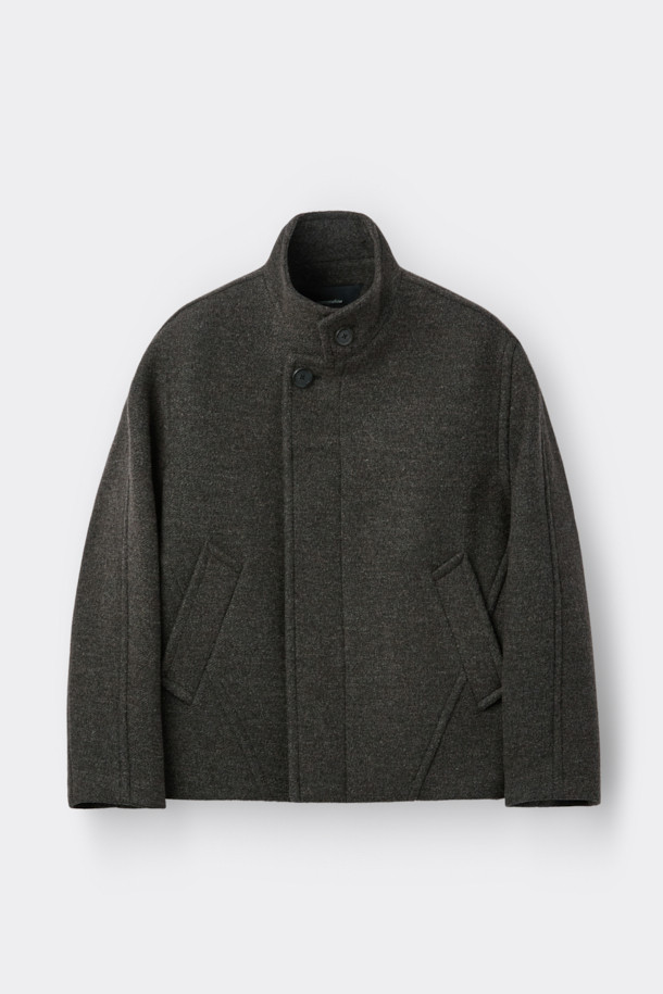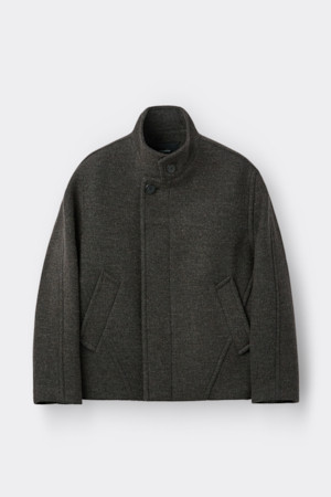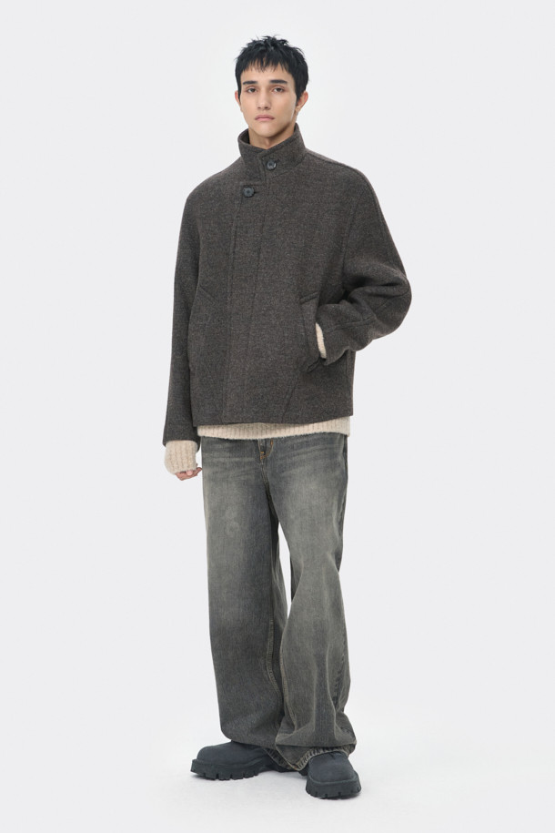 Brown Wool Highneck Short Coat
