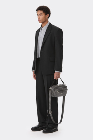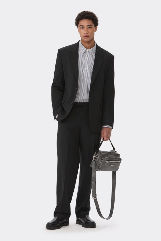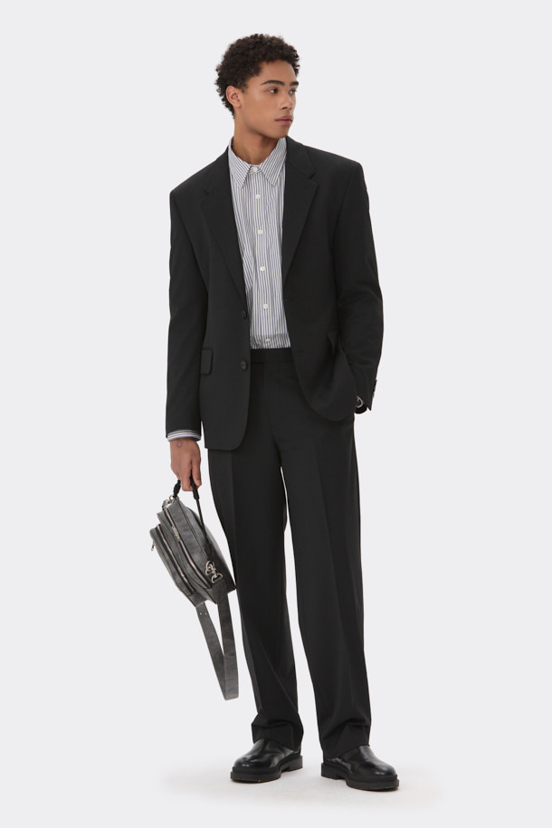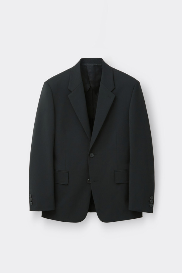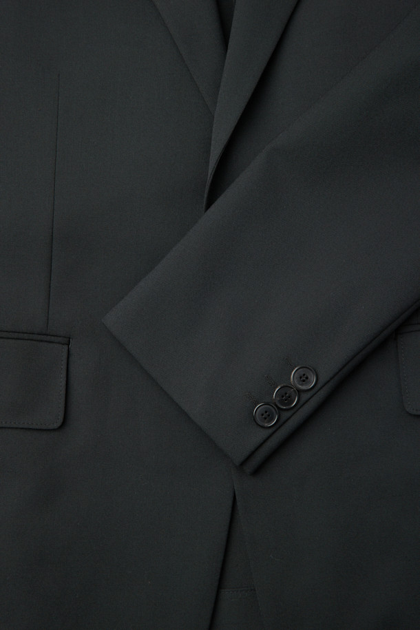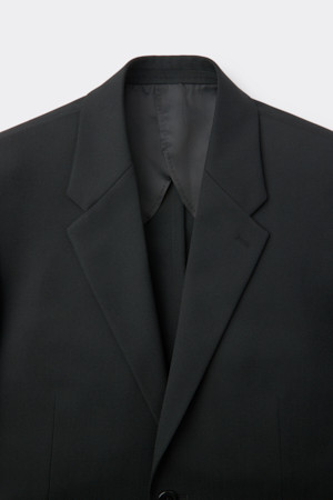 Black Relaxed Fit Wool Blended Setup Jacket
