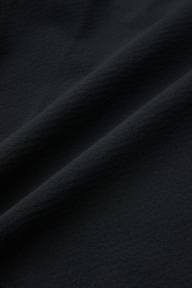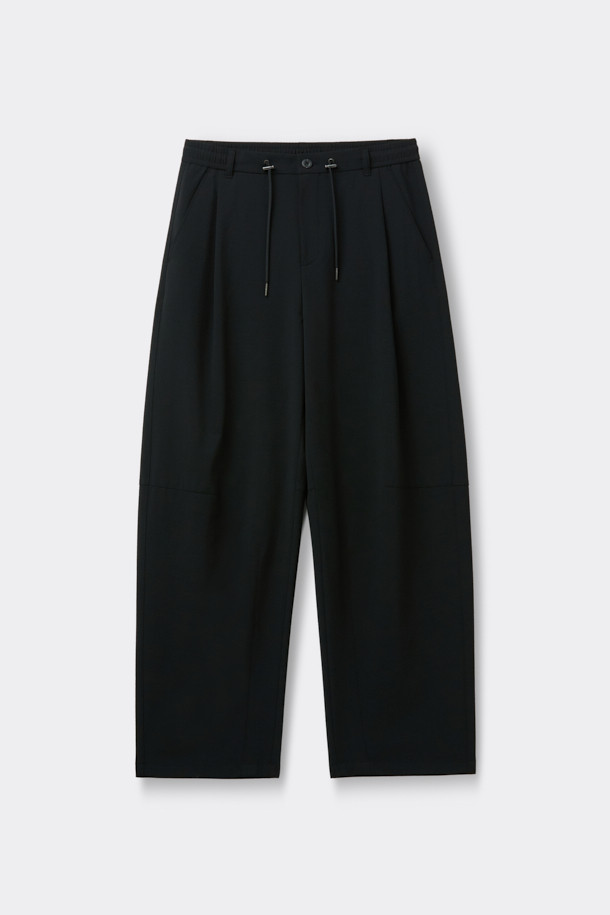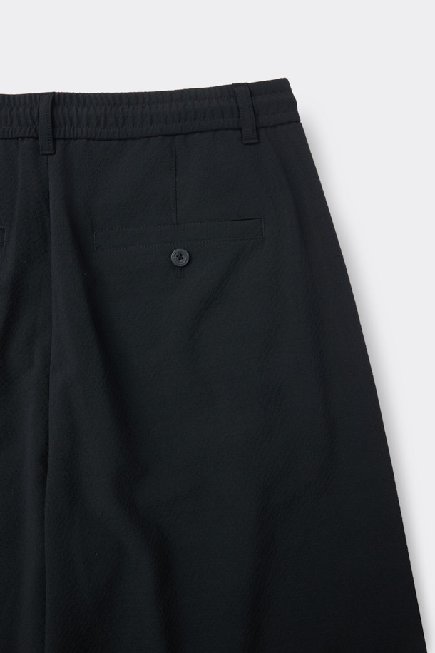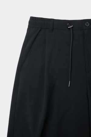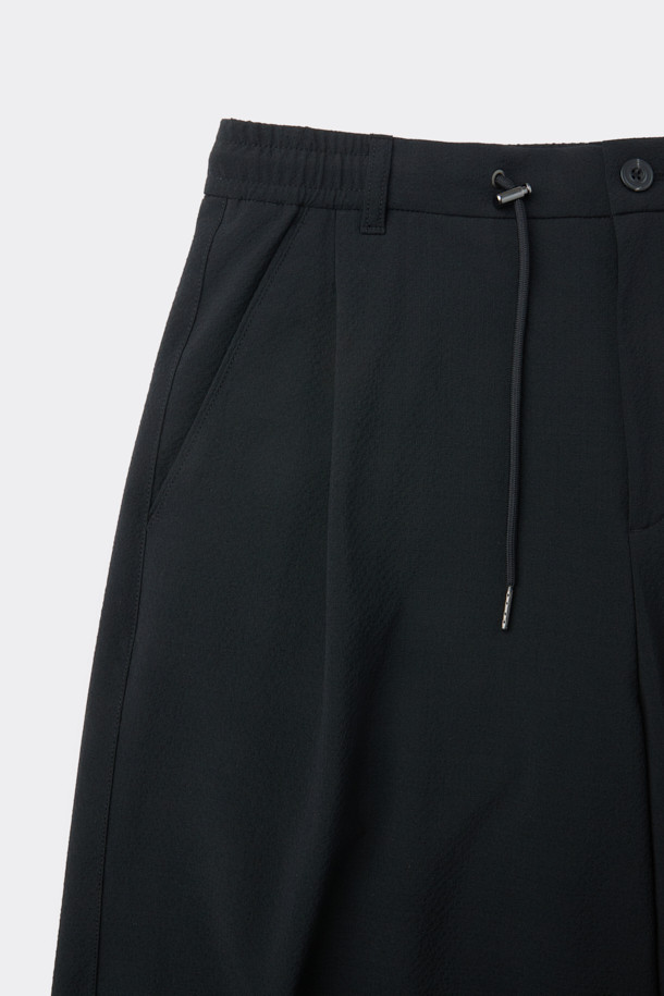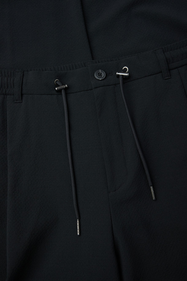Black Curved Drawstring Seersucker Pants