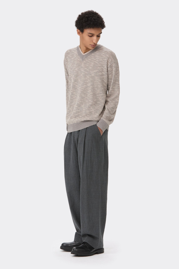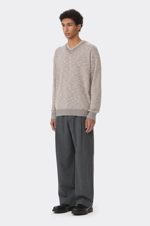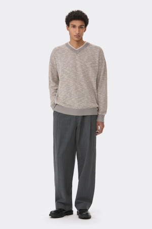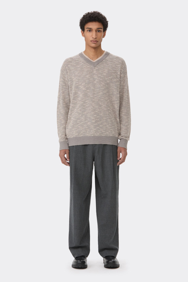 Beige V-neck Layered Sweater