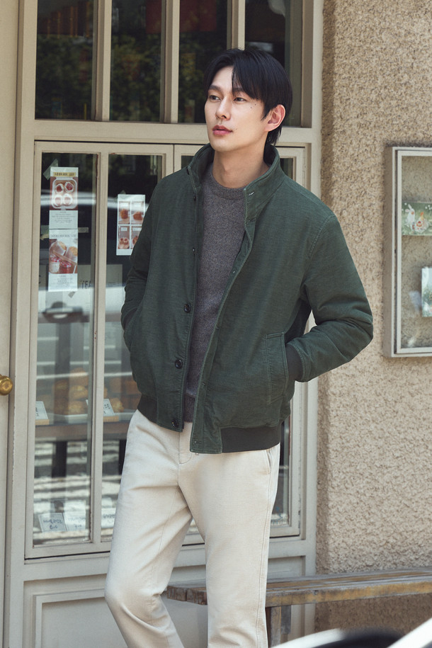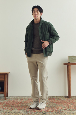 [셀렉션] 니트 배색 몰스킨 블루종