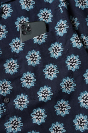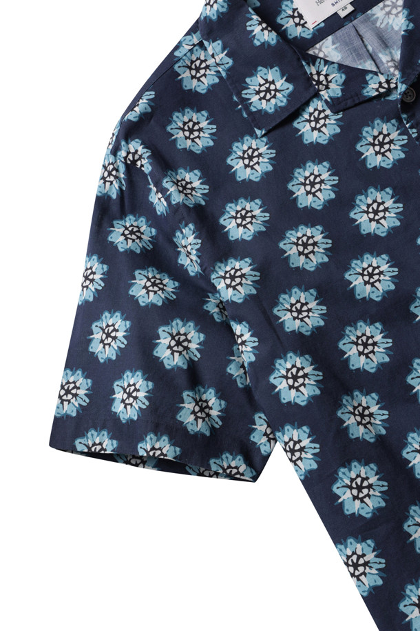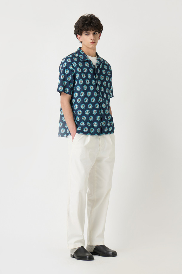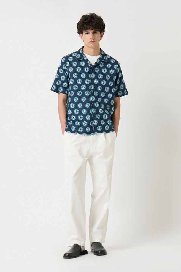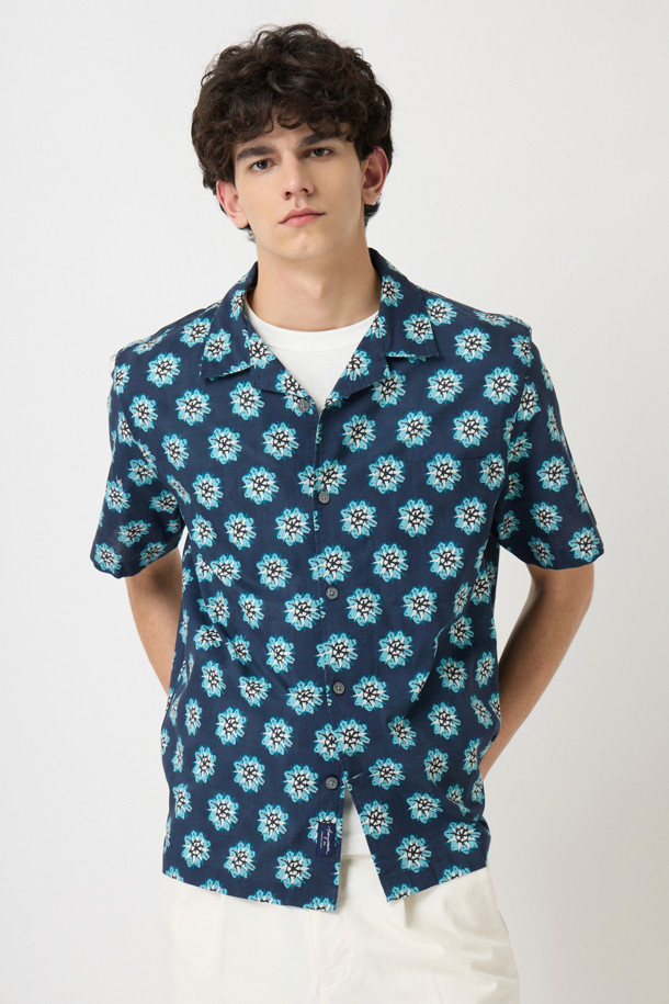반팔 프린트 오픈 카라 셔츠 (컴포트핏)