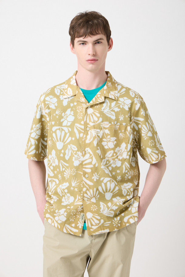 반팔 프린트 오픈 카라 셔츠 (컴포트핏)