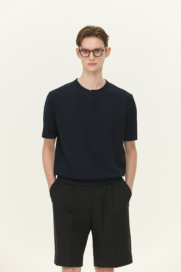[MOVERE] 반팔 크루넥 스웨터 - 네이비