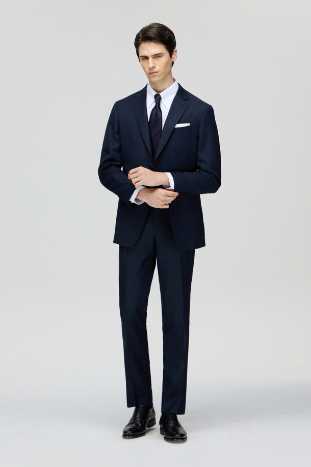 울 솔리드 조직감 수트 팬츠 (Navy)