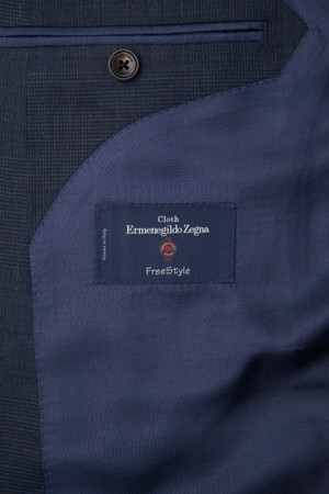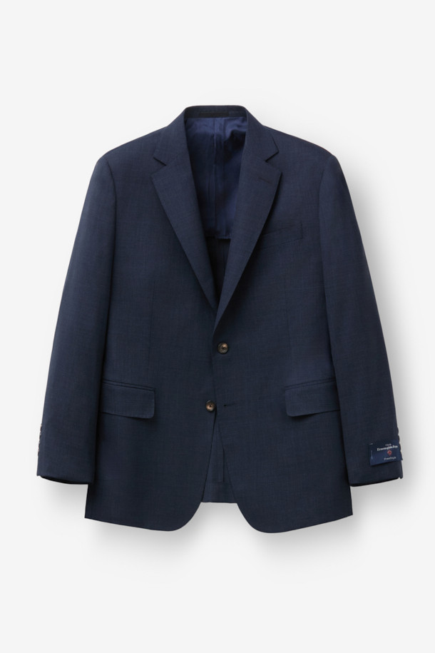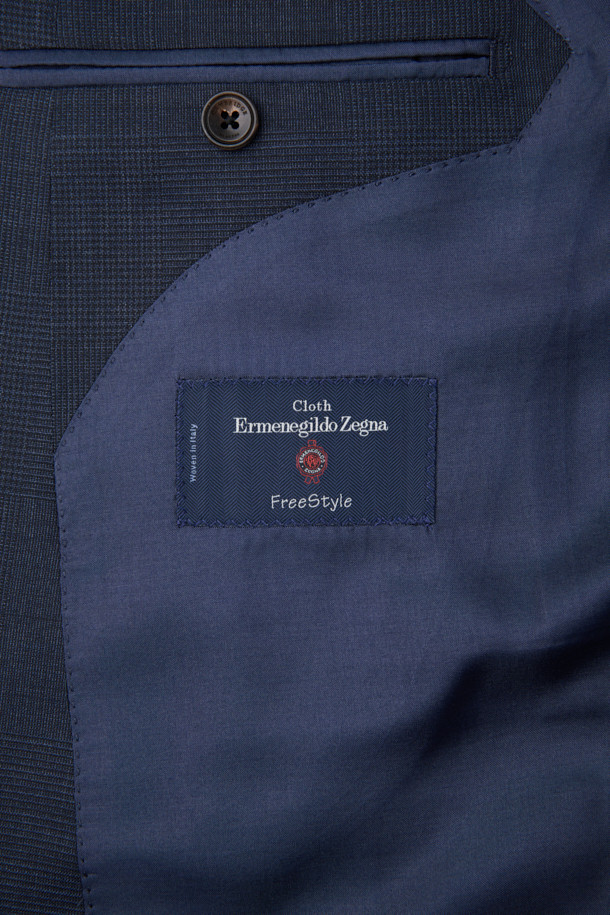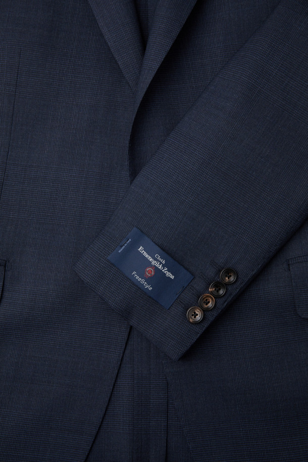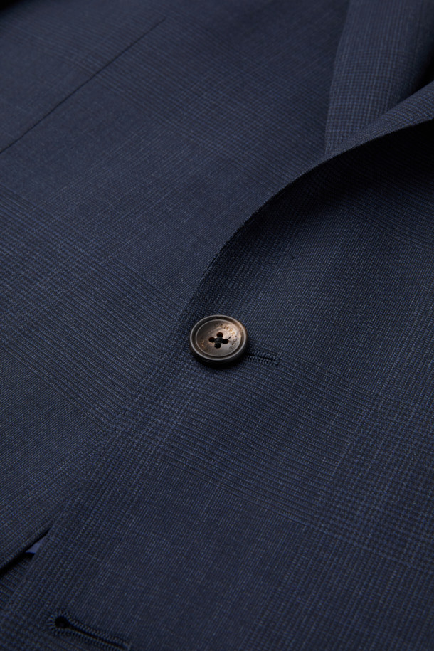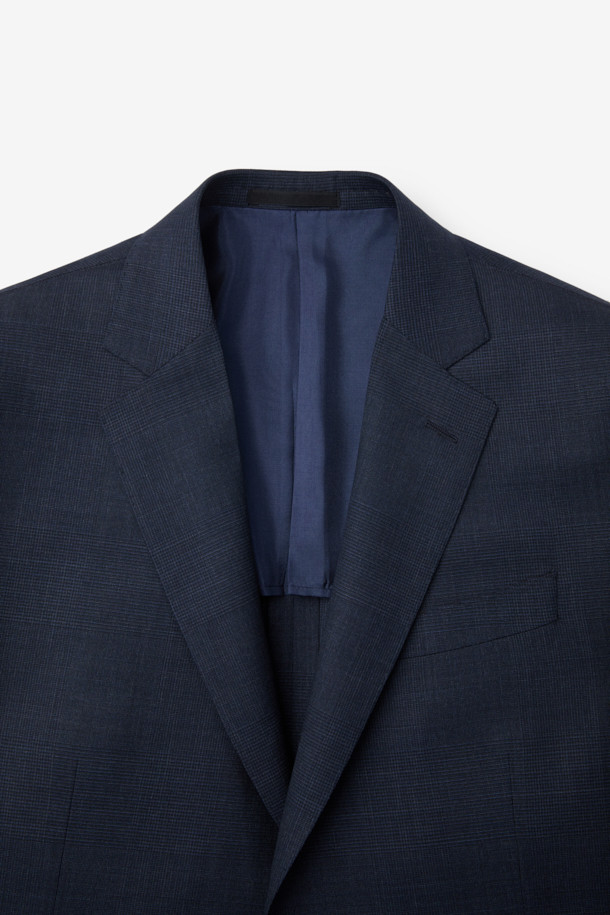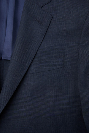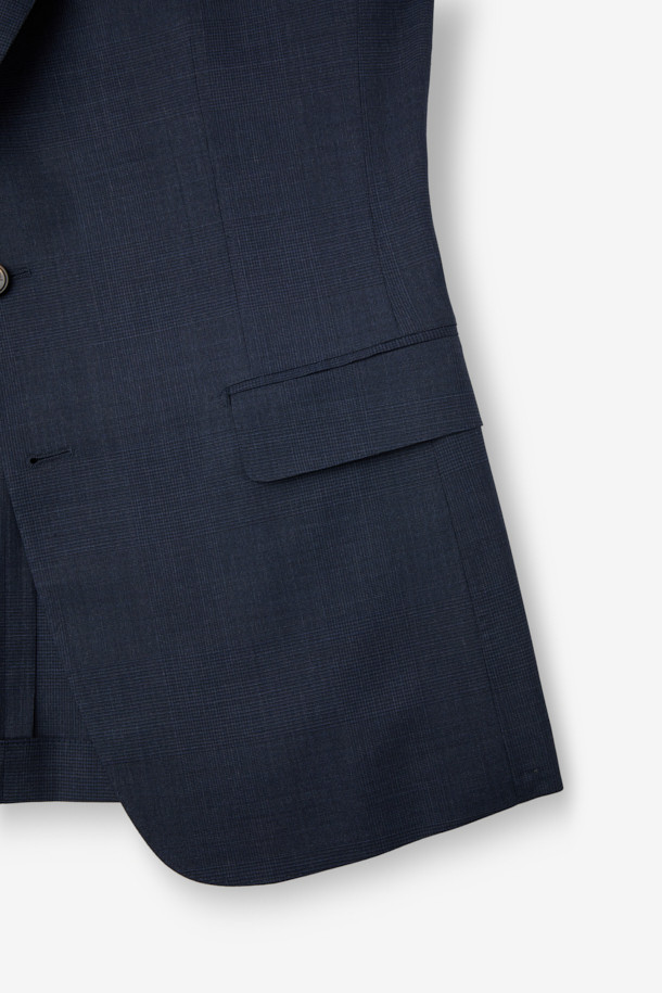 제냐 울 쉐도우체크 수트 자켓 - 네이비