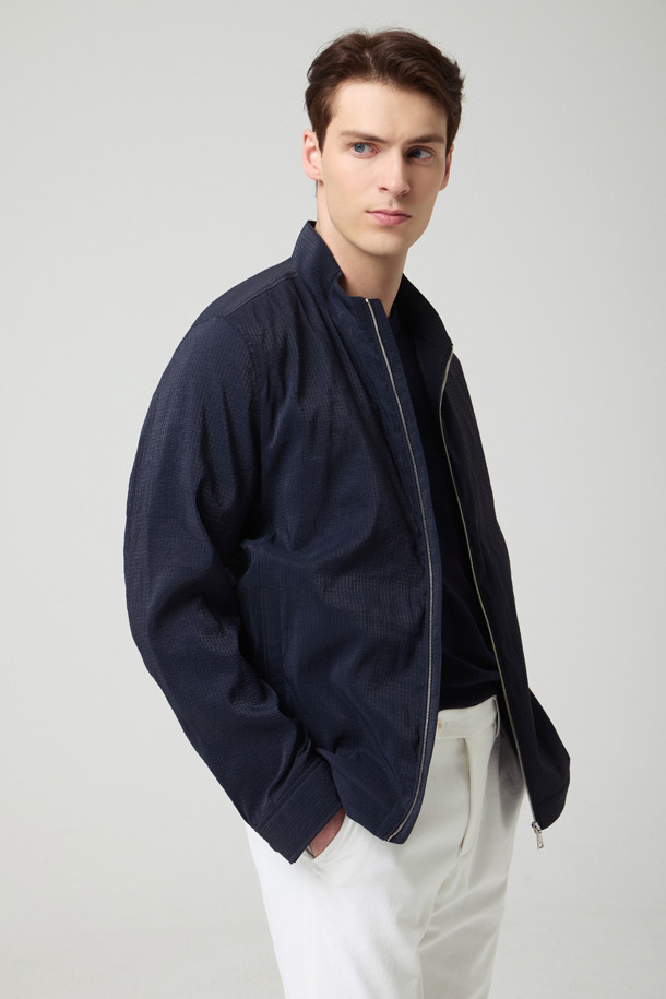 썸머 마이크로 서커 블루종 점퍼 네이비