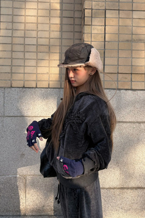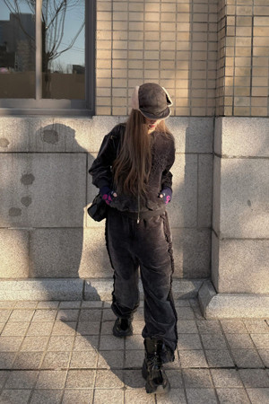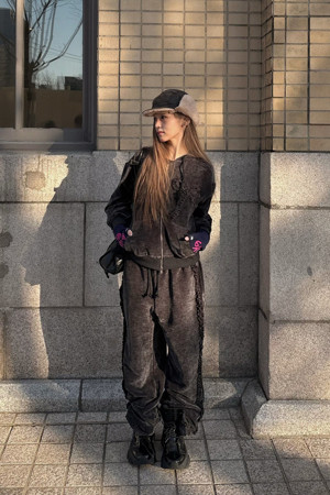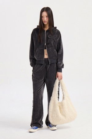 [Re-Order] Chouetties by LUCKY CHOUETTE_Frill Point Velvet Long Pants (dark grey)