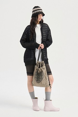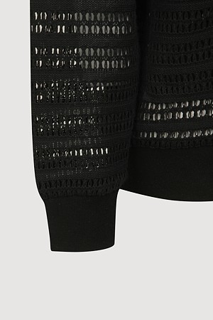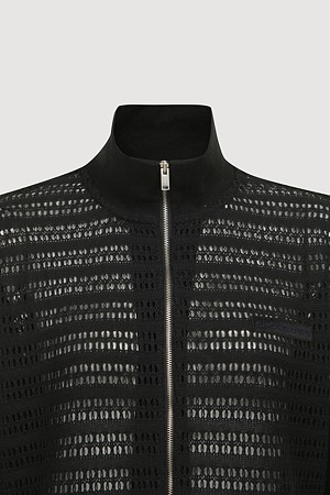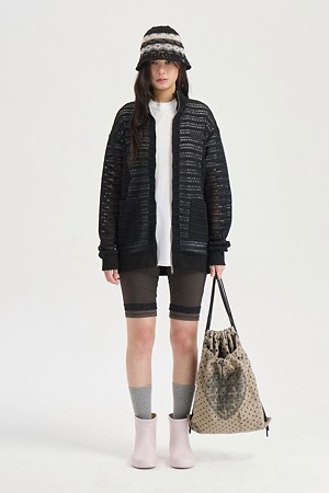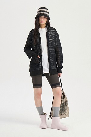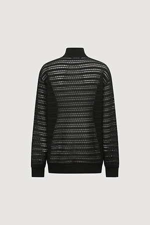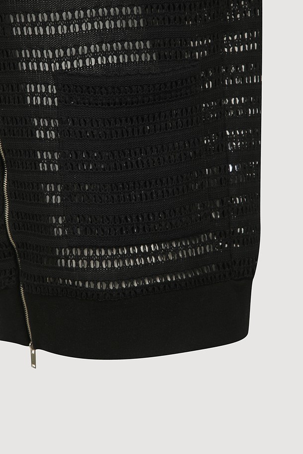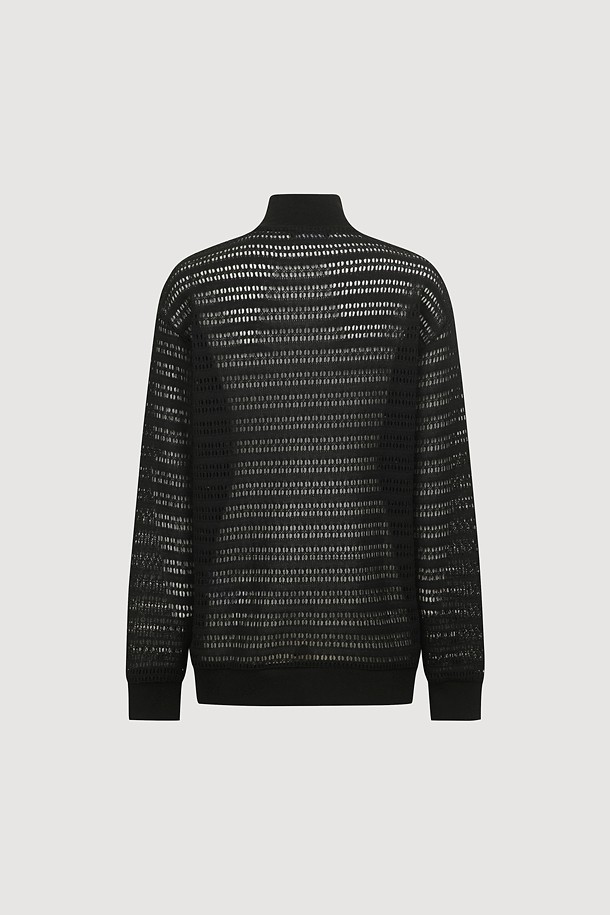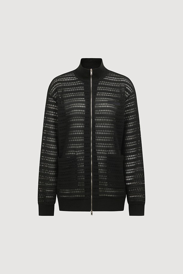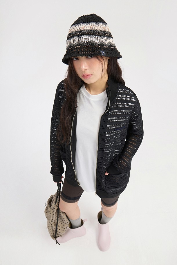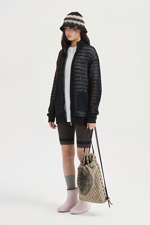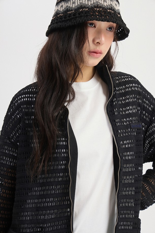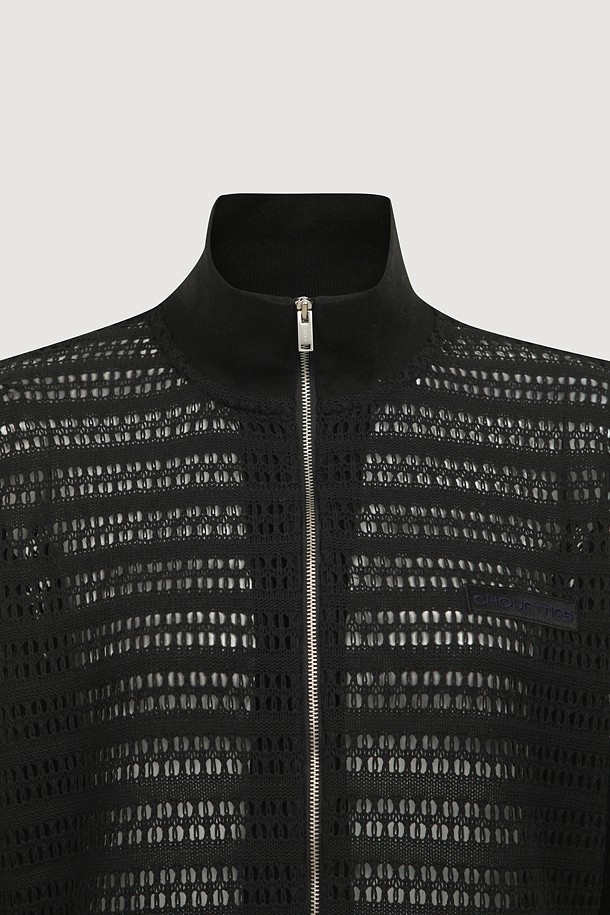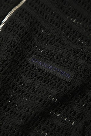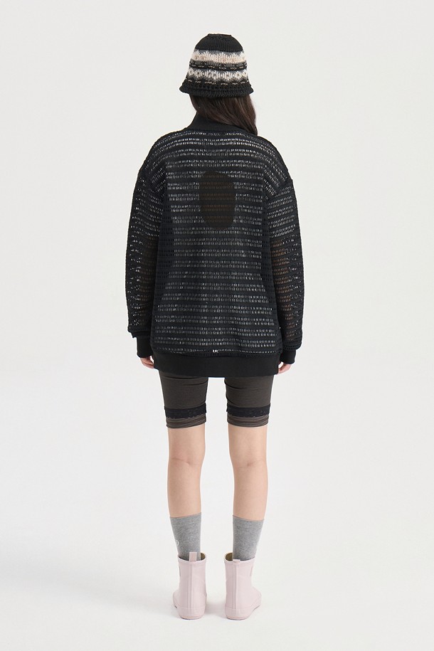 Chouetties by LUCKY CHOUETTE_Loose Fit Crochet Zip-Up Jumper (black)
