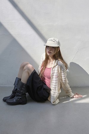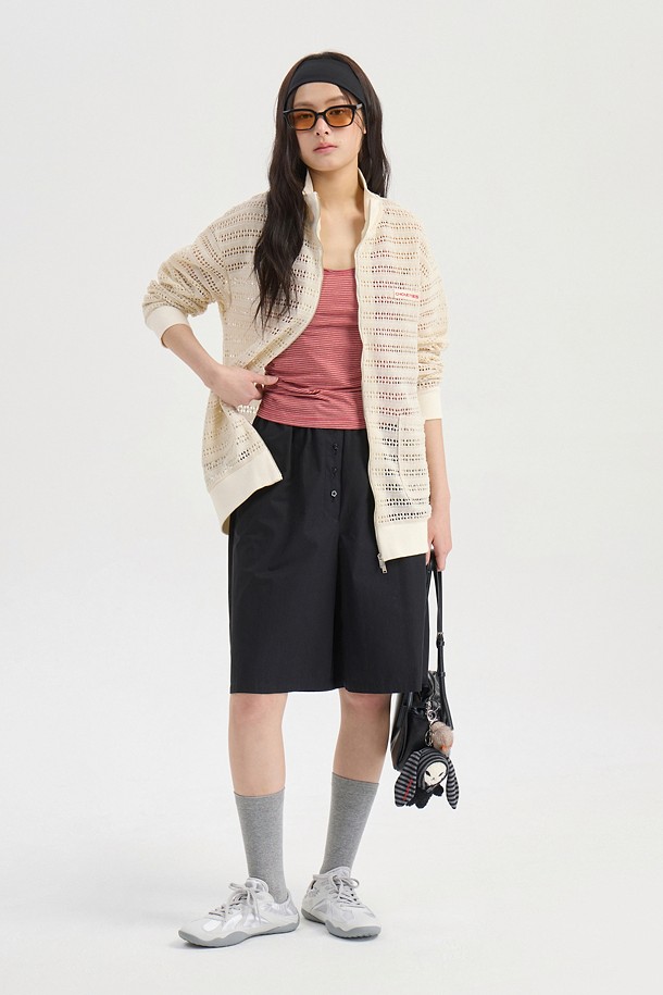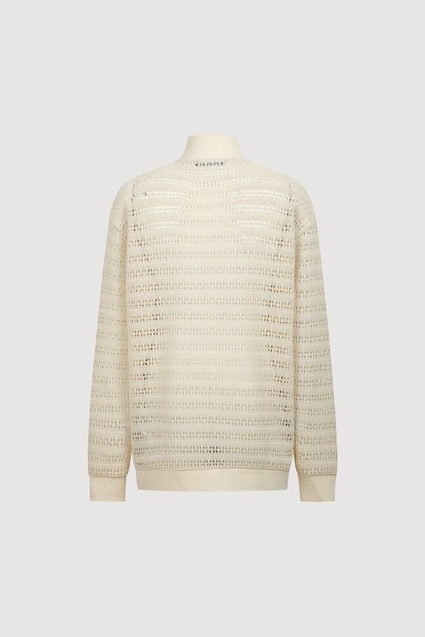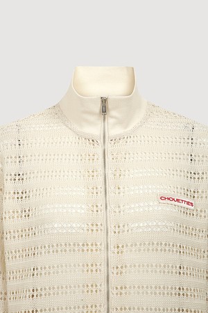 Chouetties by LUCKY CHOUETTE_Loose Fit Crochet Zip-Up Jumper (ivory)