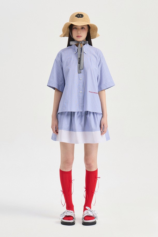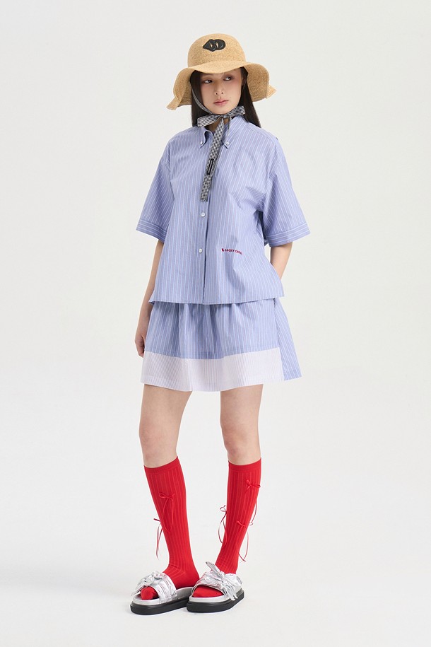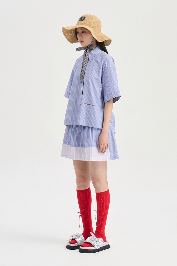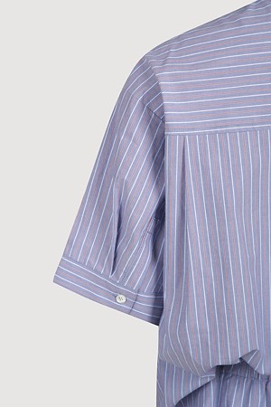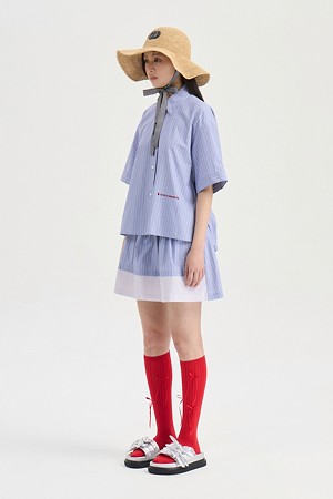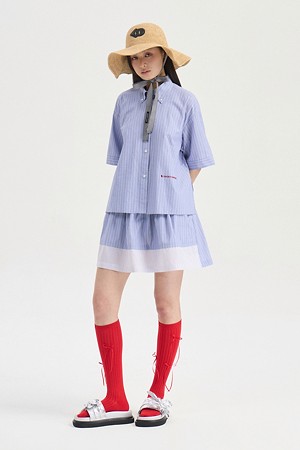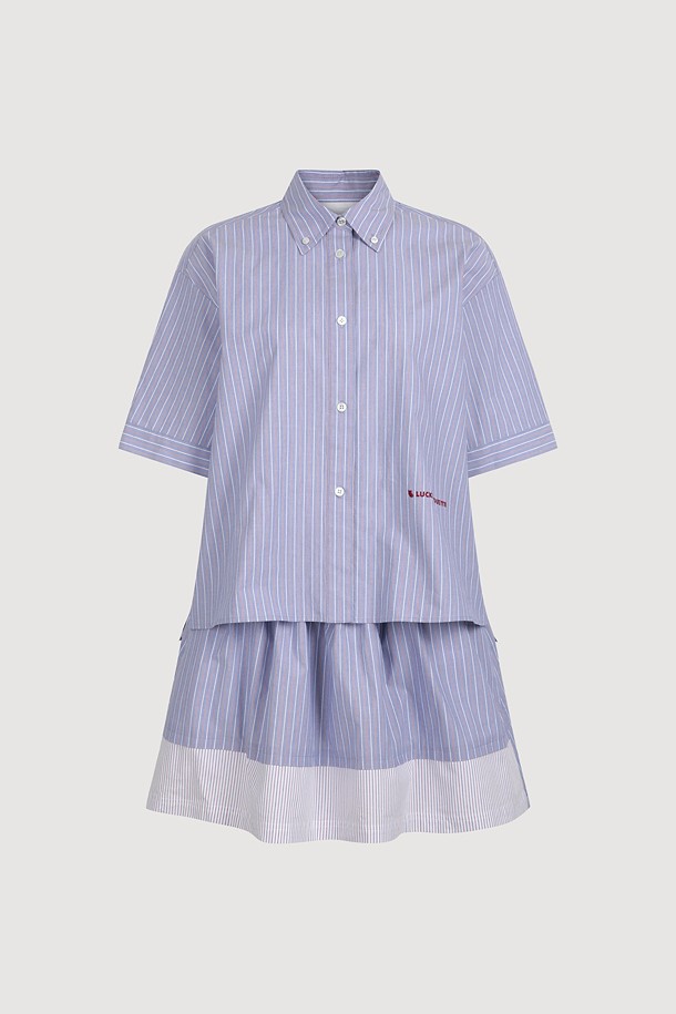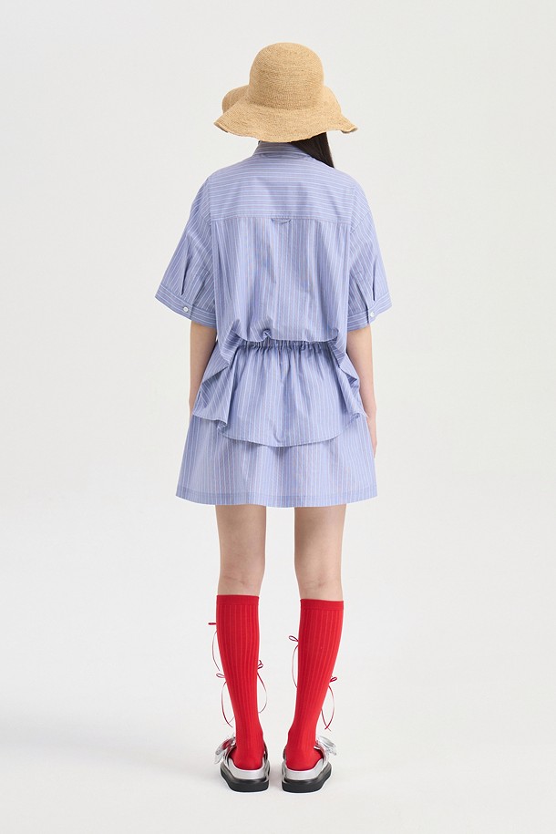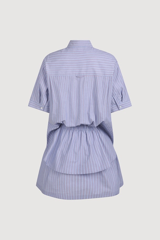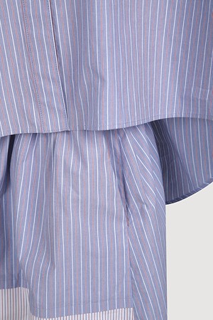 Hem Color Blend Stripe Short Sleeve Dress (blue)