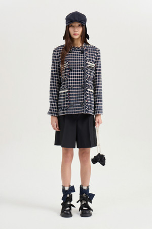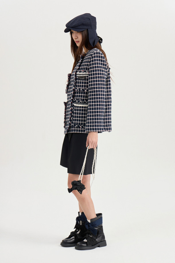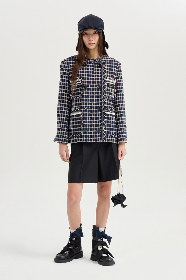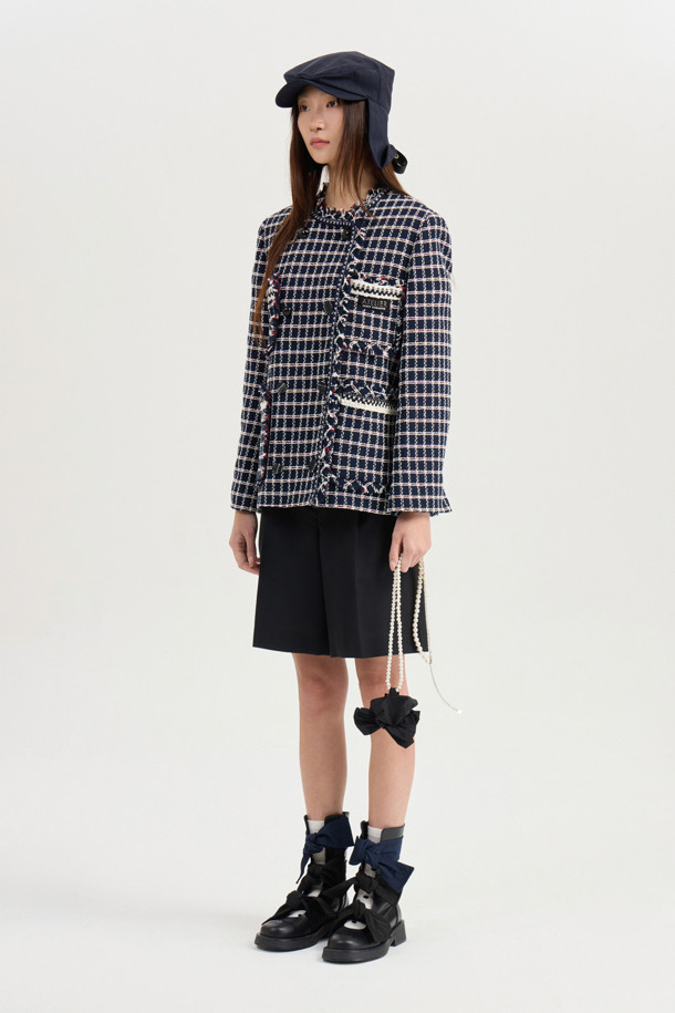 [Atelier] Collarless Tweed Jacket (navy)