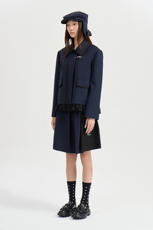 [Atelier] Hem Lace Color Jacket (navy)