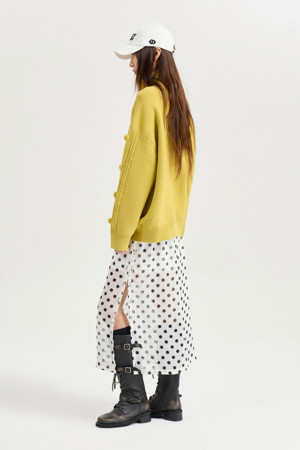 [Atelier] Dot Print H-Line Banding Skirt (ivory)