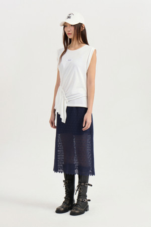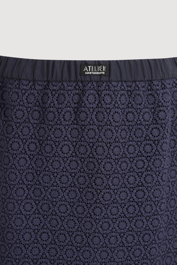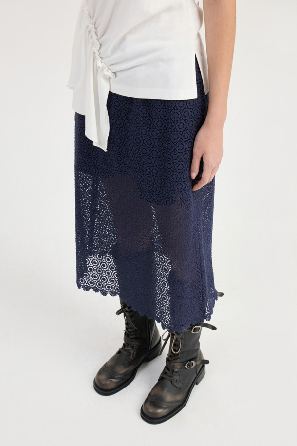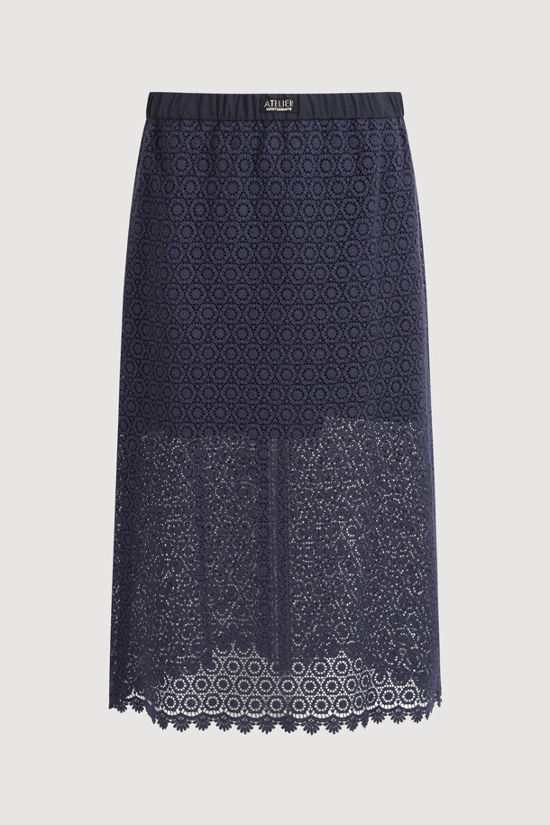 [Atelier] H line Lace Bending Midi Skirt (underskirt set) (navy)