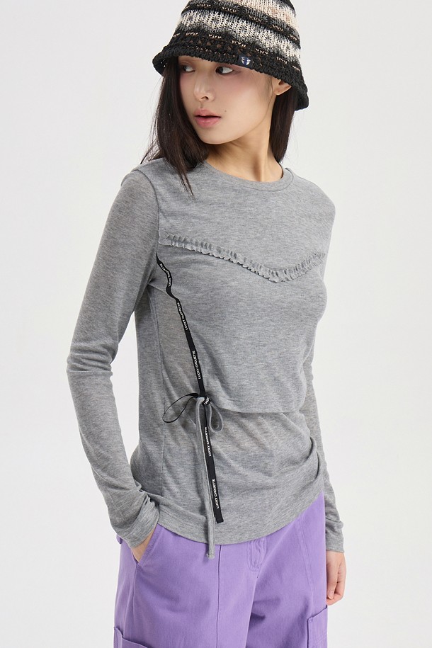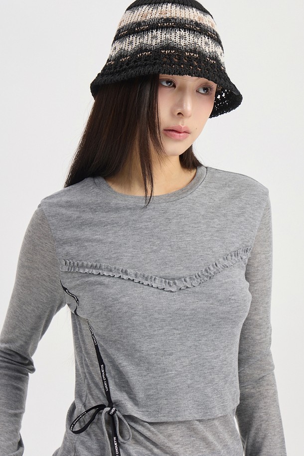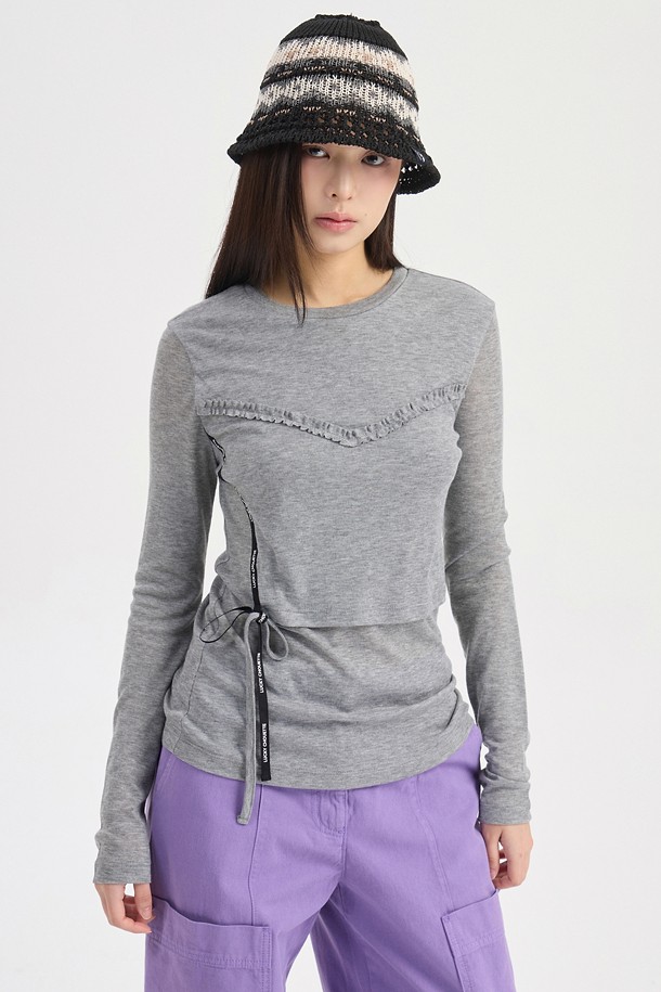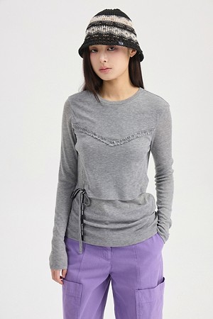 Layered Point Slim Fit Long Sleeve T-shirt(grey)