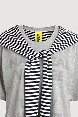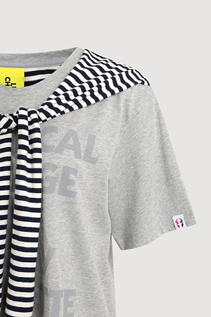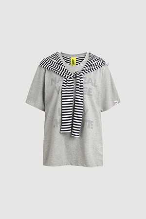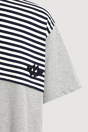 Stripe Color Blend Loose Fit Short Sleeve T-Shirt (melange grey)