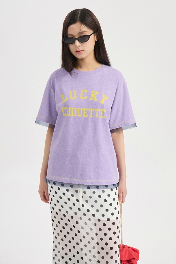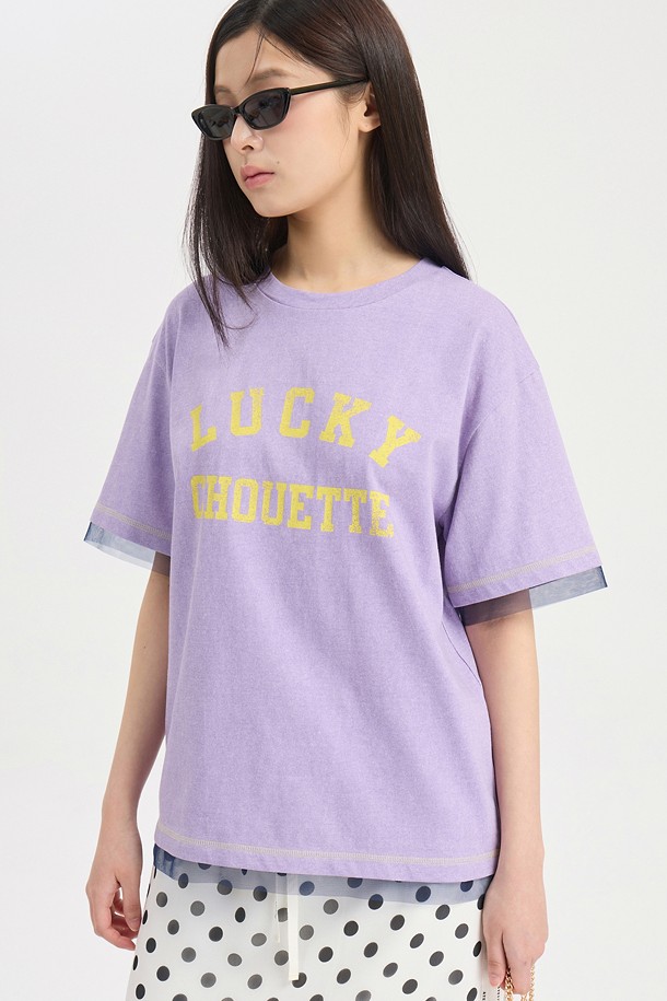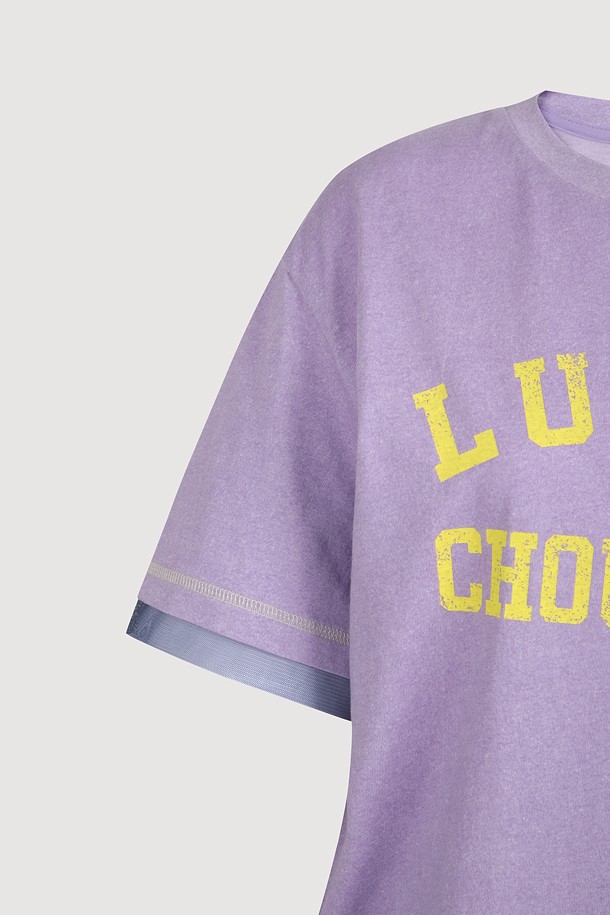Mesh Color Blend Loose Fit Short Sleeve T-shirt (violet)
