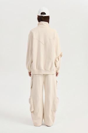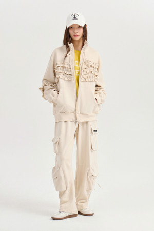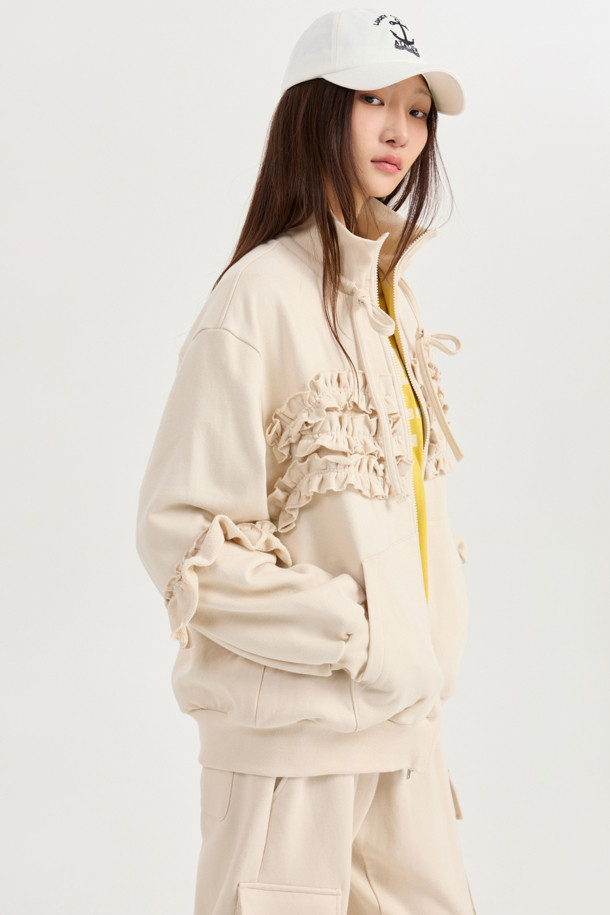 [Atelier] Jersey Frill Zip-up Jumper (light beige)