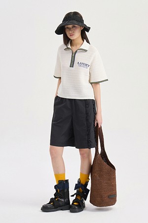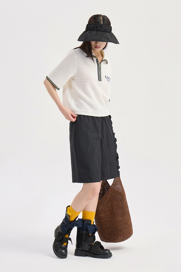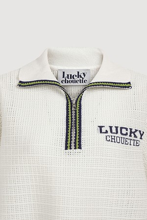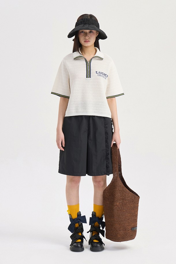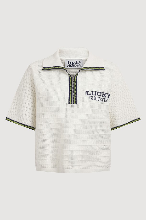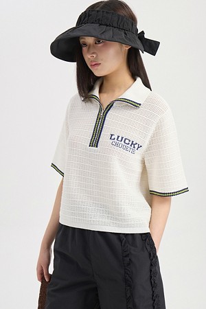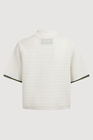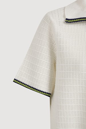 Mesh Collar Short Sleeve Knit Pullover (ivory)