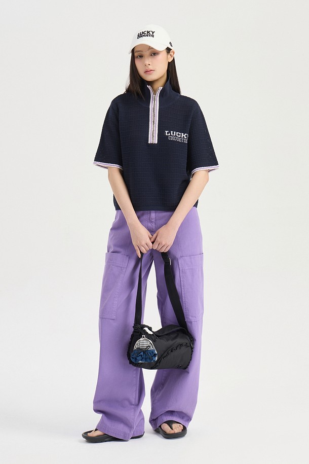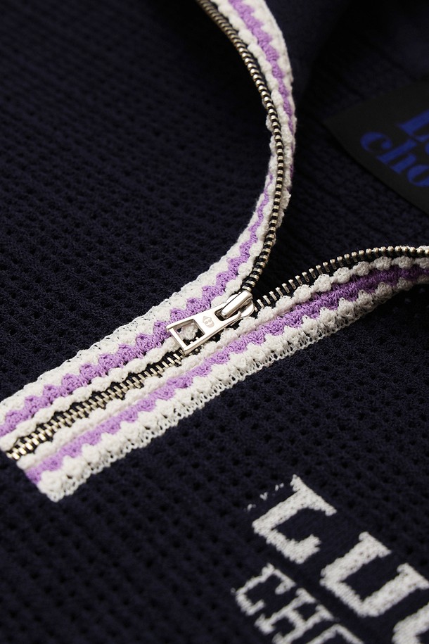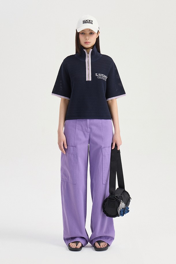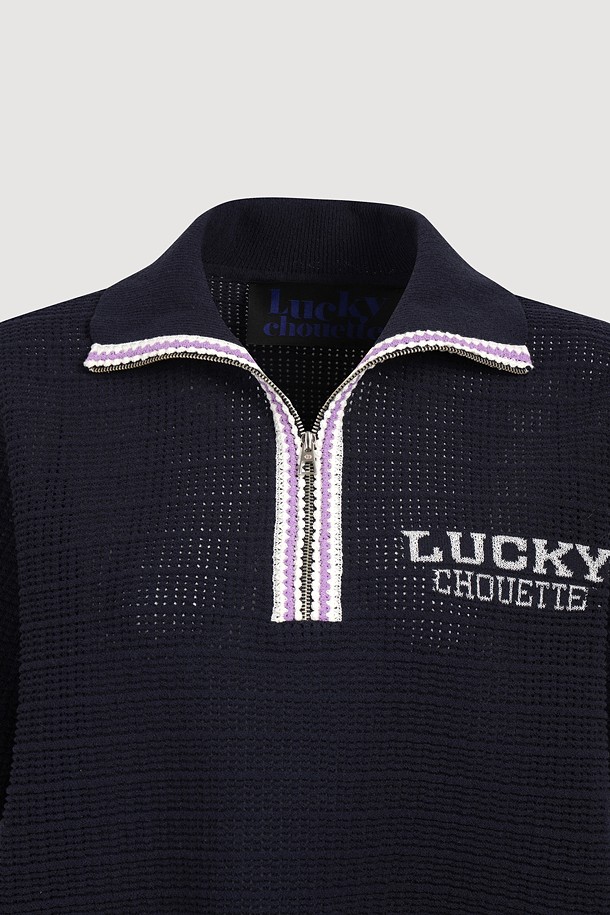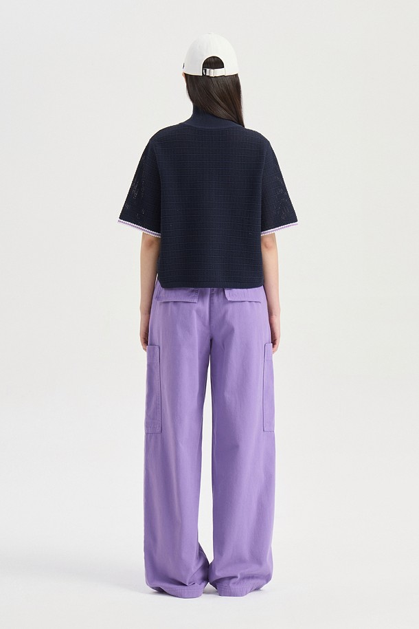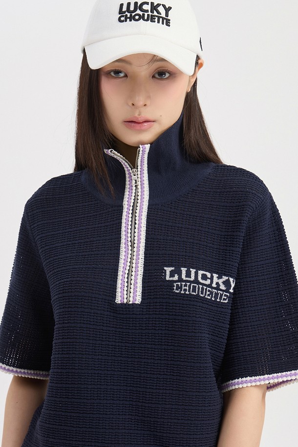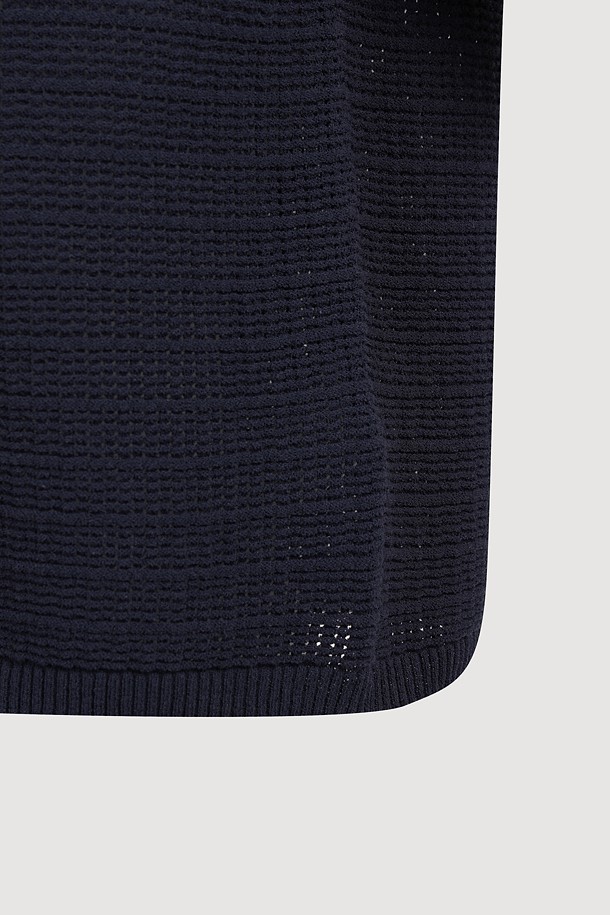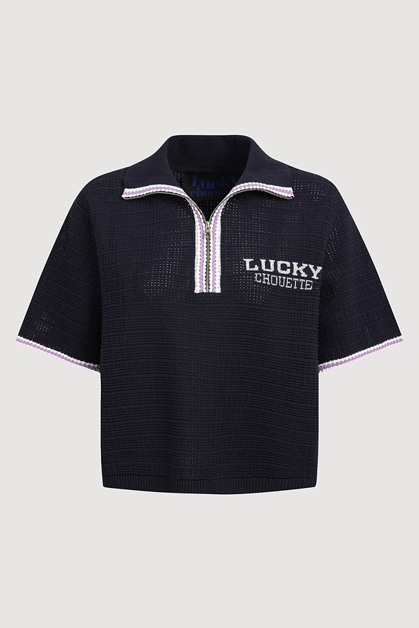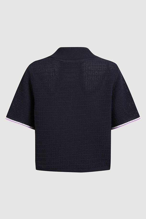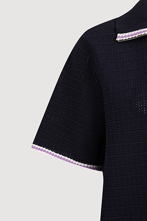 Mesh Collar Short Sleeve Knit Pullover (dark navy)