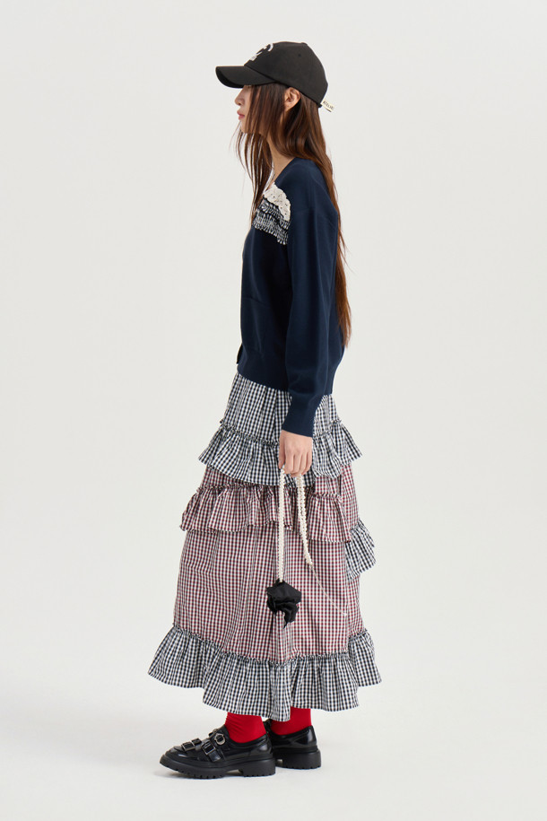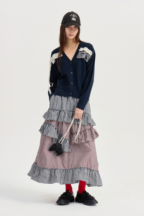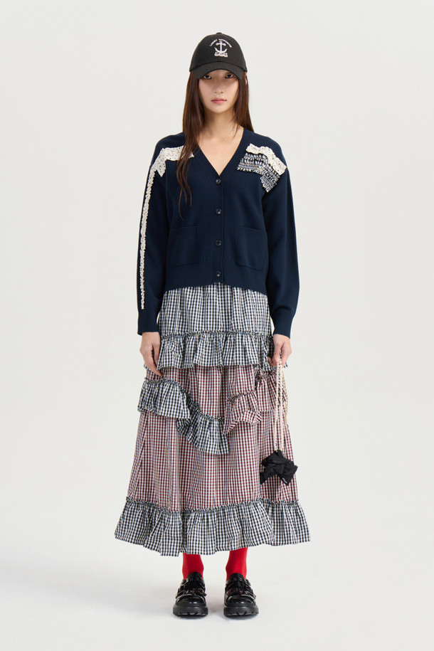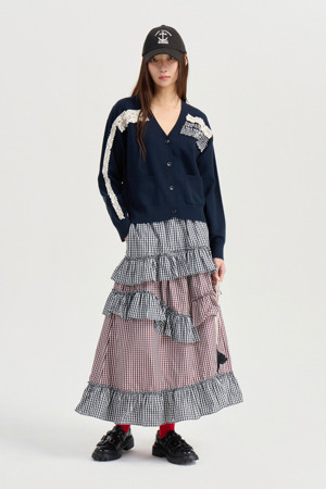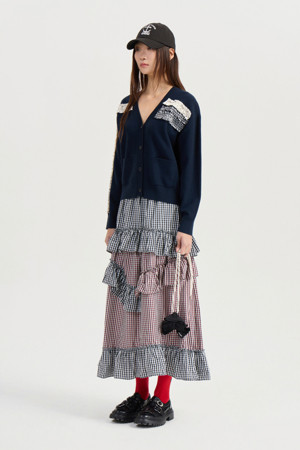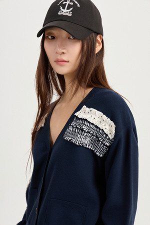 [Atelier] Woven Frill Knit Cardigan (dark navy)