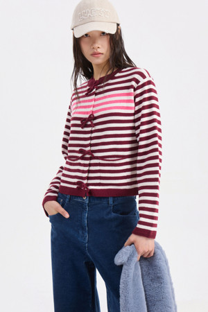 [Re-Order] Stripe Ribbon Knit Cardigan