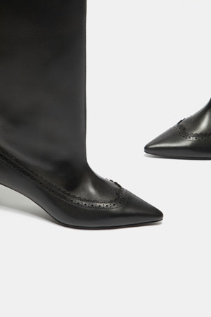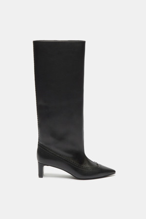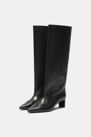 Brogue detail long boots(black)