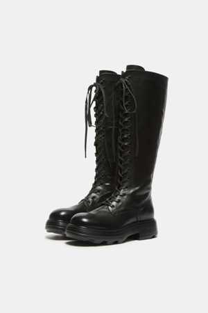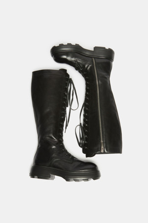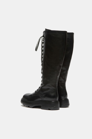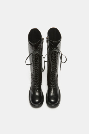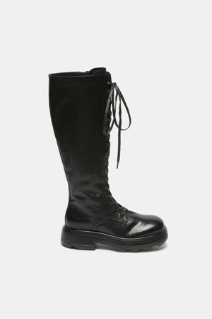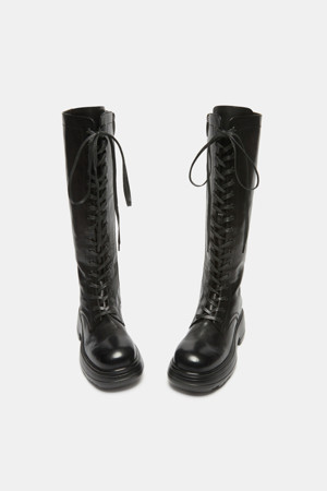 Lace-up long boots(black)
