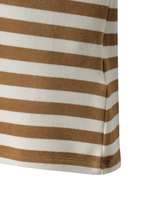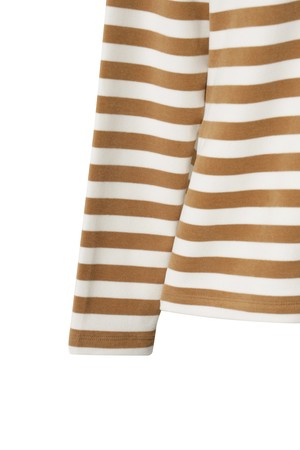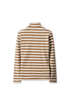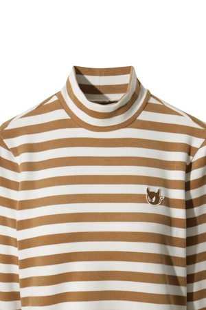 피치, 브라운, 화이트 색상의 스트라이프 패턴이 돋보이는 여성용 하이넥 긴소매 티셔츠입니다. 부드러운 기모 안감으로 제작되어 겨울철에도 따뜻하게 착용 가능하며, 보온성과 신축성을 갖춰 편안한 활동성을 제공합니다. 레귤러핏으로 제작되어 베이직하면서도 스포티한 스타일을 연출하며, 골프룩 또는 일상복으로 활용하기 좋습니다. 베스트나 아우터와 레이어링하여 다양한 스타일을 연출할 수 있으며, 크로스 코디에도 용이합니다.