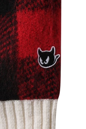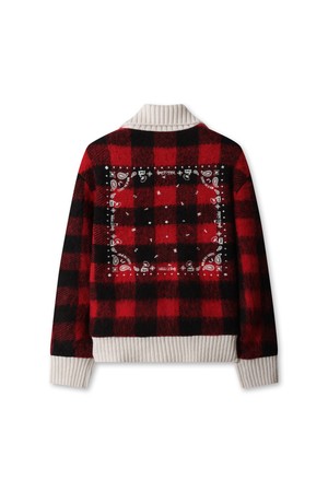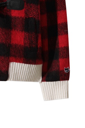 Women Tartan Check Knit Blouson Jacket