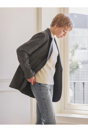 헤링본 메리노울 자켓 - 그레이