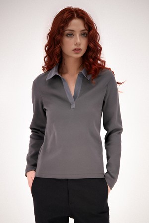 [25SS] Ribbed Collar T-shirt _Grey