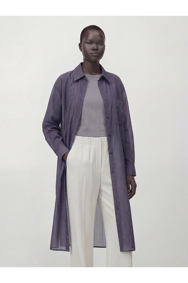 [26SS] Sheer Nylon Long Shirt _Navy