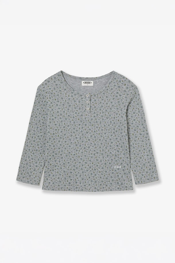 [AEAE] FLOWER HENLEY NECK TEE 플라워 헨리 넥 티셔츠 - MELANGE GREY