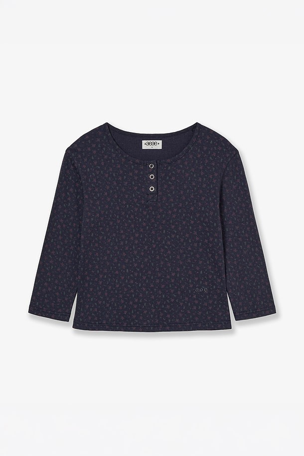 [AEAE] FLOWER HENLEY NECK TEE 플라워 헨리 넥 티셔츠 - NAVY