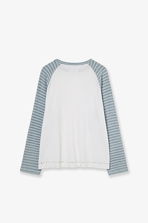 CINNAMOROLL STRIPE KNIT SLEEVE TEE - SKYBLUE