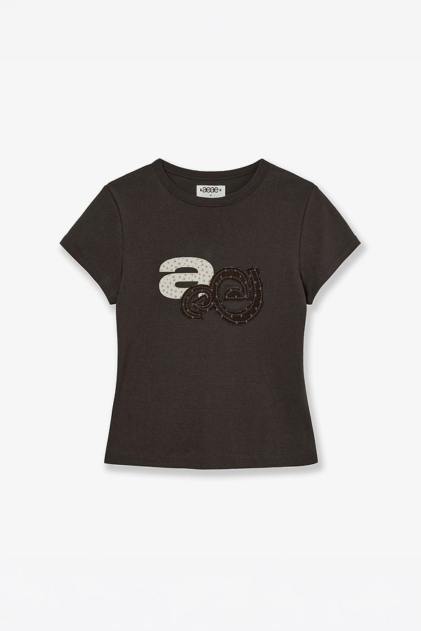 [AEAE] APPLIQUE FLOWER LOGO TEE 아플리케 플라워 로고 티셔츠 - DARK BROWN