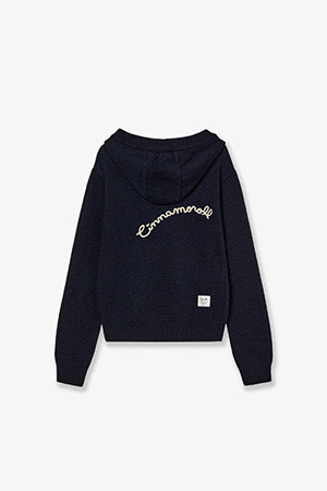 CINNAMOROLL TAIL KNIT HOODIE - NAVY