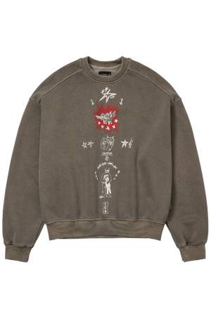 [아조바이아조] Blessing Doodle Washed Sweatshirt 블레싱 두들 워시드 스웻셔츠 - BROWN