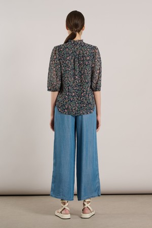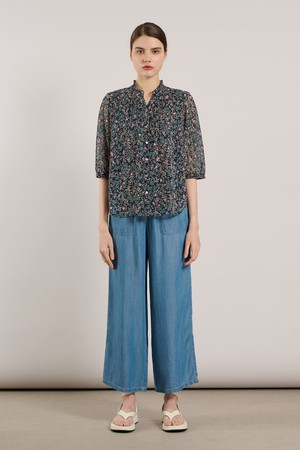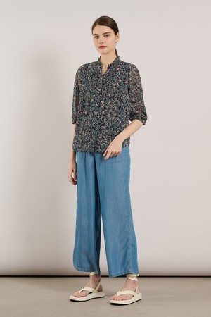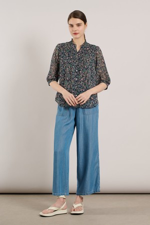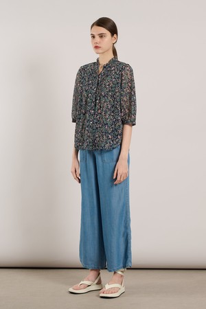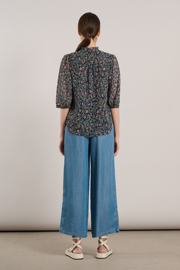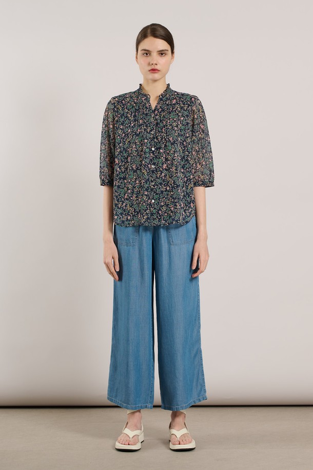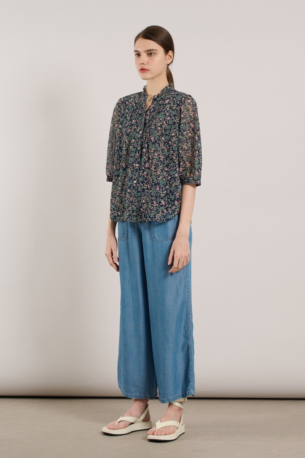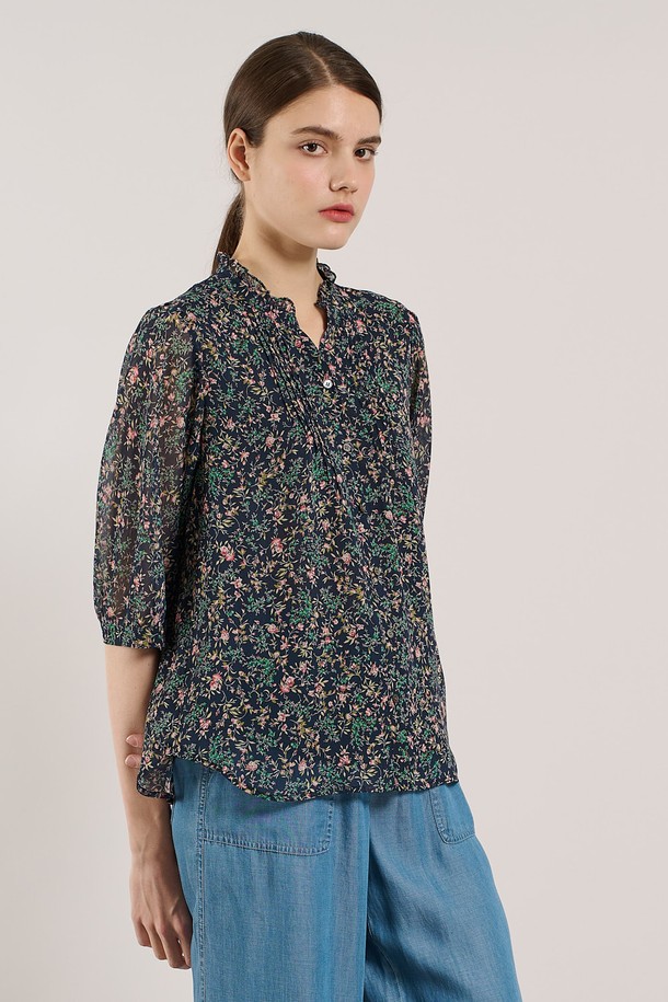 [25SU] 플라워 프린트 블라우스 - NAVY A5M4B48455